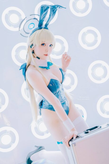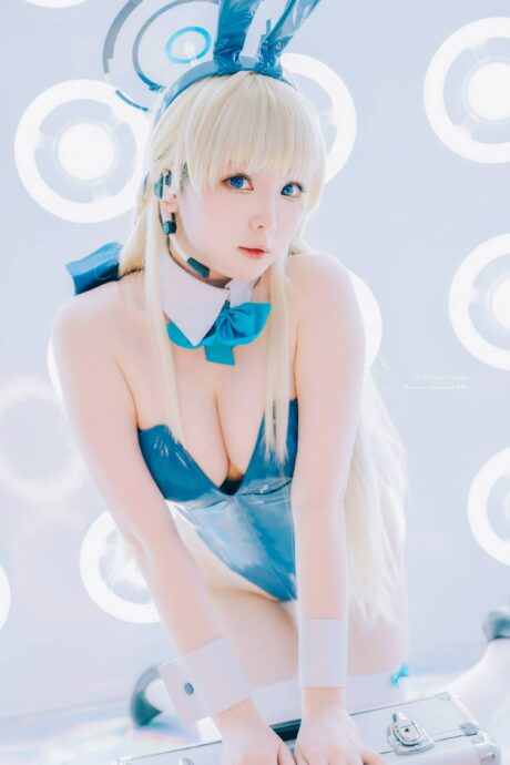 在《蔚蓝档案》的浩瀚学园宇宙中,飞鸟马时是一位既优雅又充满科技感的特工女仆。而当Coser霜月shimo把她换上这套梦幻蓝色兔女郎装时,可谓性感与科技的完美结合,仿佛整个未来都市都被甜美与高科技共同点亮。闪耀的蓝色皮革质感,与她金发碧眼的造型完美融合,仿佛来自次元之间的神秘来客。
