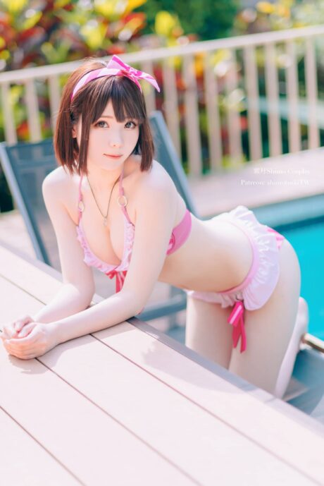 在阳光洒满泳池的午后,Coser霜月shimo化身为《路人女主的养成方法》的女主角 - 加藤惠,用甜美的粉色泳装演绎出这位存在感稀薄的少女不一样的夏日风情。粉白条纹的比基尼搭配俏皮的蝴蝶结与轻盈的披纱,仿佛把加藤惠那份平凡中的特别完美展现。镜头下的她神情温柔,微微一笑间,便让人明白为什么男主英梨梨和霞之丘诗羽都会被这位看似不起眼的女孩所打动 - 原来,加藤惠的魅力从不是张扬的,而是那种让人不知不觉陷入的温柔气场。
