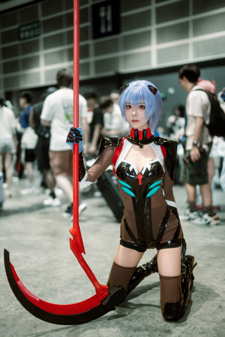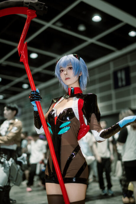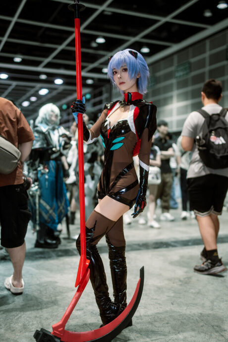 在香港动漫及电子游戏节ACGHK 2025的舞台上,Coser等等Tohtoh的登场瞬间引发了现场观众的惊呼。她以剧场版《新世纪福音战士》为灵感,手持巨大的镰刀,完美还原了绫波丽在战斗中的坚毅神态。舞台灯光打在她的蓝发上,仿佛闪烁着EVA机舱中的冷色光辉,那一刻,观众仿佛置身于东京-3的战场之中。