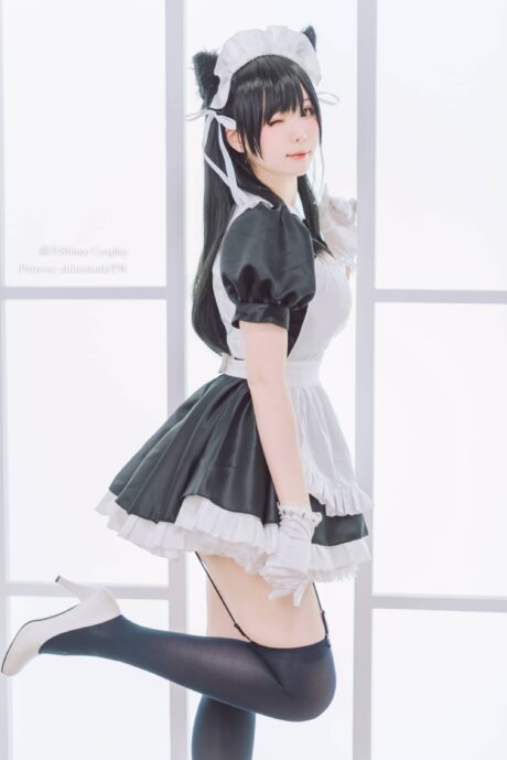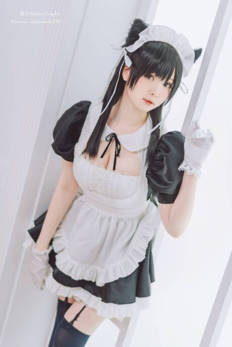 今天,霜月shimo化身《碧蓝航线》的人气角色 - 爱宕,并以女仆装版本的形象亮相,可谓是将优雅与魅力发挥到了极致。照片中,她身着典雅的黑白女仆服,细腻的蕾丝边与层叠的裙摆相互辉映,宛如游戏中温柔又危险的重巡舰娘降临现实。黑色长发垂落肩头,搭配猫耳造型的发饰与洁白的女仆头巾,增添了一份俏皮的气息,让人瞬间陷入“舰娘与主人”的梦幻错觉之中。