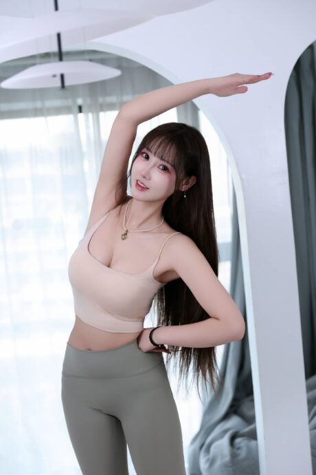 羽生三未举手伸展的瞬间,动作标准而优雅,是那种看似轻松却能看出深厚功底的姿态。照片中的她目光温柔又带点俏皮,仿佛在鼓励你:“别只看了,也来动一动吧!”这种自然的互动感,让原创“瑜伽姐姐”这个角色更加鲜活,也展现出羽生三未在角色塑造方面的灵气与掌控力。作为Coser,羽生三未始终擅长在不同主题间切换风格,而这次的原创作品,更是将健康、活力与美感结合得恰到好处。