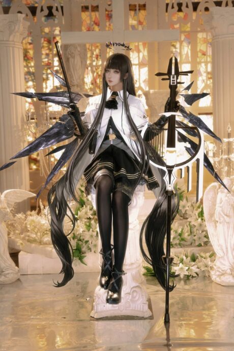 场景布置同样下足功夫。暖色的彩绘玻璃、白色立柱、礼堂般的背景,让阿尔图罗的神圣气息更上一层楼。整套cos不仅漂亮,更带着一种让人忍不住想“截图当壁纸”的魅力。羽生三未的长发造型飘逸顺滑,与阿尔图罗的优雅特质完美重叠,光影打在发丝和白色外套上,就好像源石技艺正在悄然流动。总之,羽生三未的《明日方舟》阿尔图罗cos既漂亮又性感,还带着浓厚的艺术气息,是一次把角色“搬出游戏、带到现实”的教科书级演绎。